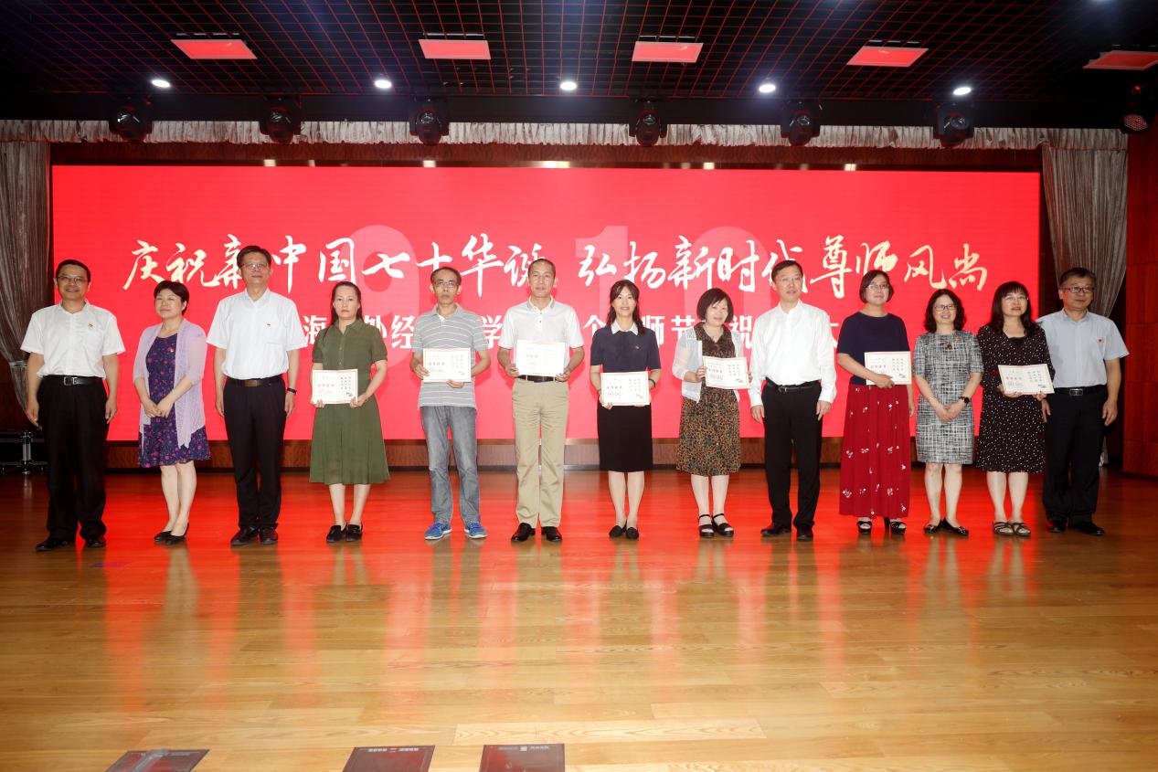 过去一年,一批优秀教师分别在教学、科研、管理和育人工作中默默耕耘,取得了优异的成绩。其中,何欢浪、谢佩洪、高运胜三位老师荣获2019年度“优秀研究生指导教师”,李睿、詹德斌、张翼飞和梁玲四位老师荣获2018年度“科研标兵”,于蕾等9人获颁2019年《从事教育工作三十年纪念证》,沈克华等120人在2017-2018学年度考核中荣获“优秀”。校领导为各类奖项获得者颁发荣誉证书。