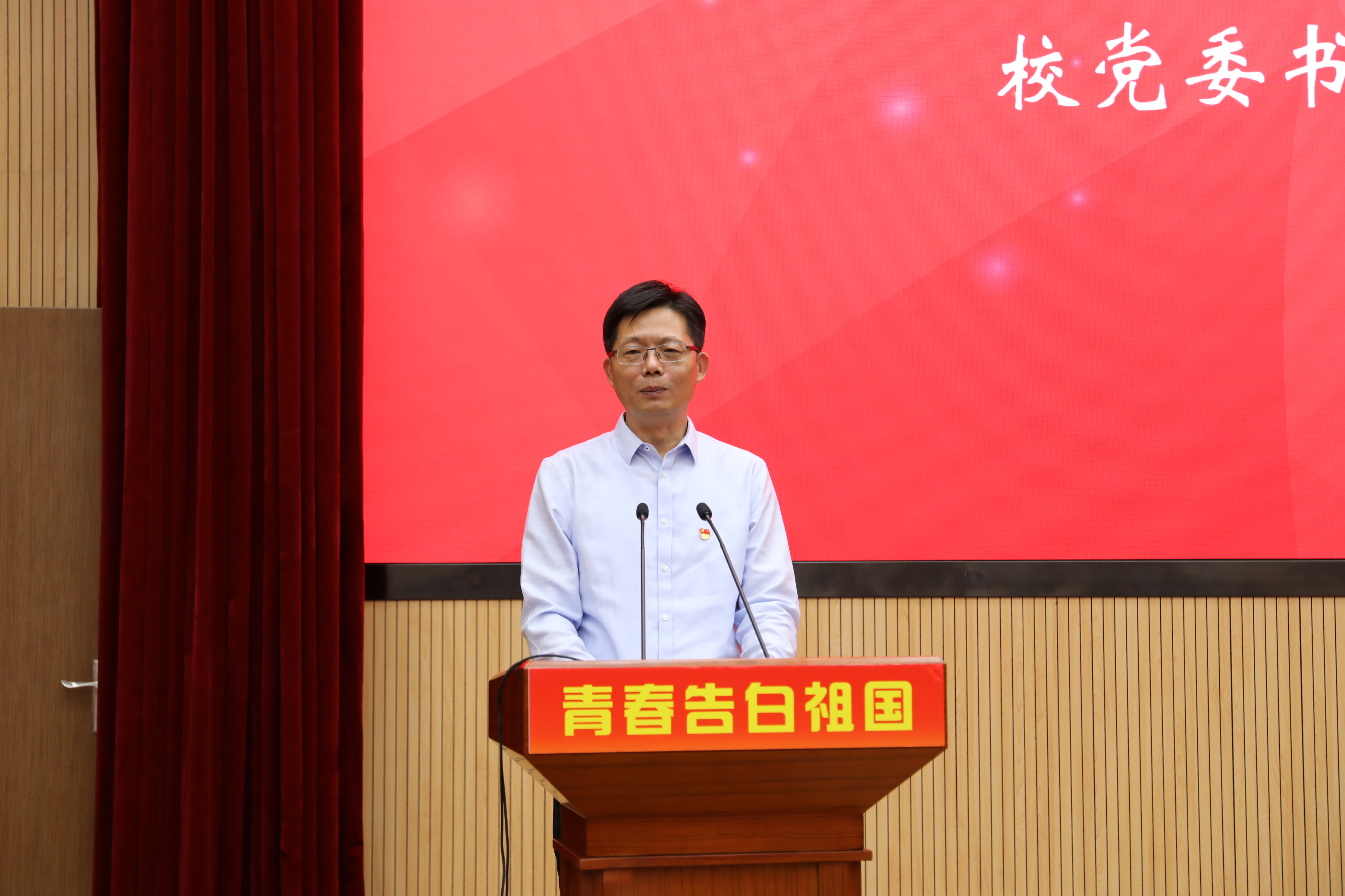 9月19日,马克思主义学院、校团委、教务处、党委学工部在图书馆思源报告厅联合举办“走乡镇,看巨变”——新中国成立70周年暑期专项社会实践分享会。校党委书记殷耀,副校长徐永林,党委学工部部长许继亮,教务处处长龙江,马克思主义学院党总支书记兼院长秦淑娟,党委宣传部副部长(挂职)张帅,校团委书记缪韵笛,党委学工部副部长刘素贞等出席本次分享会。分享会由马克思主义学院党总支副书记刘海泉主持。