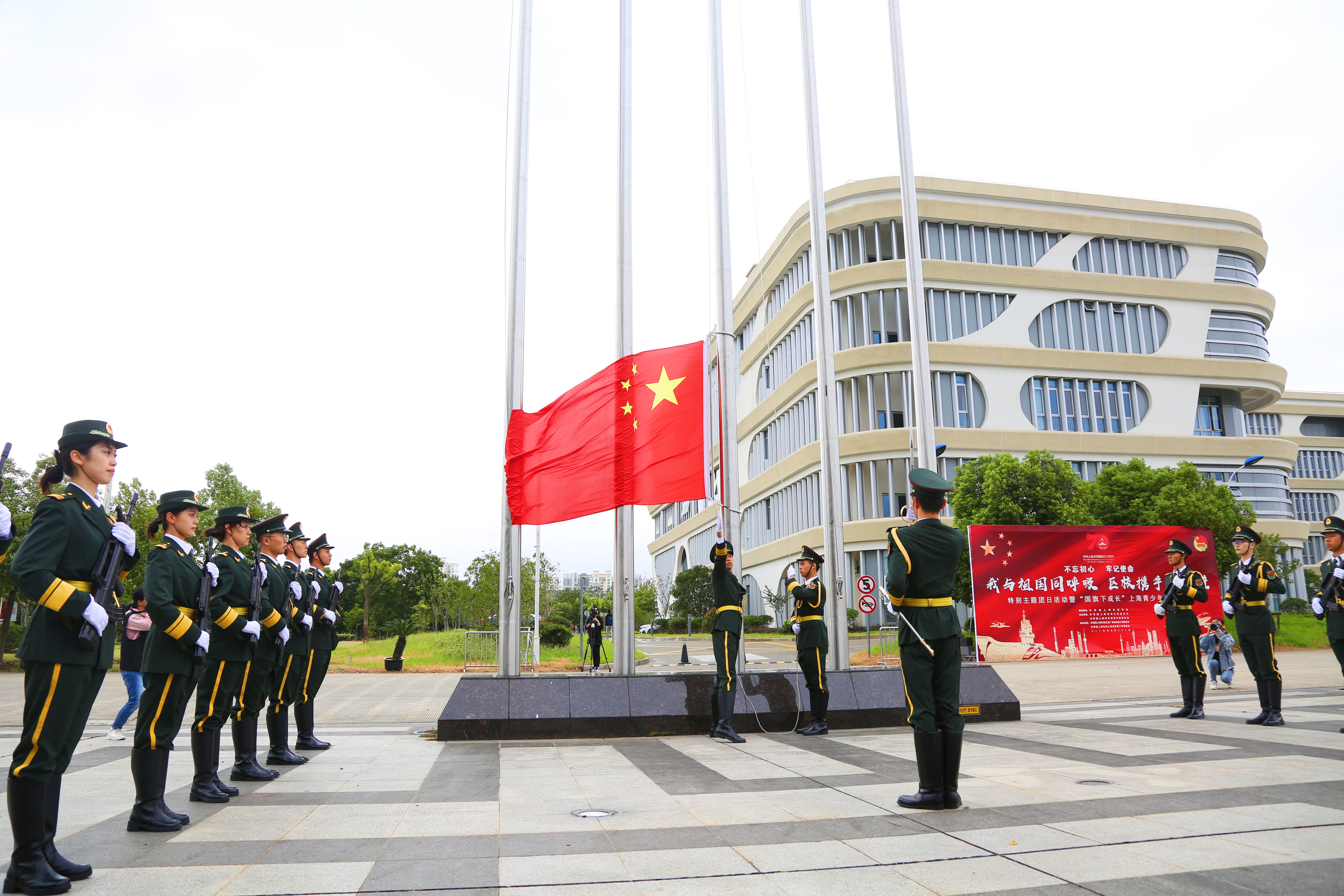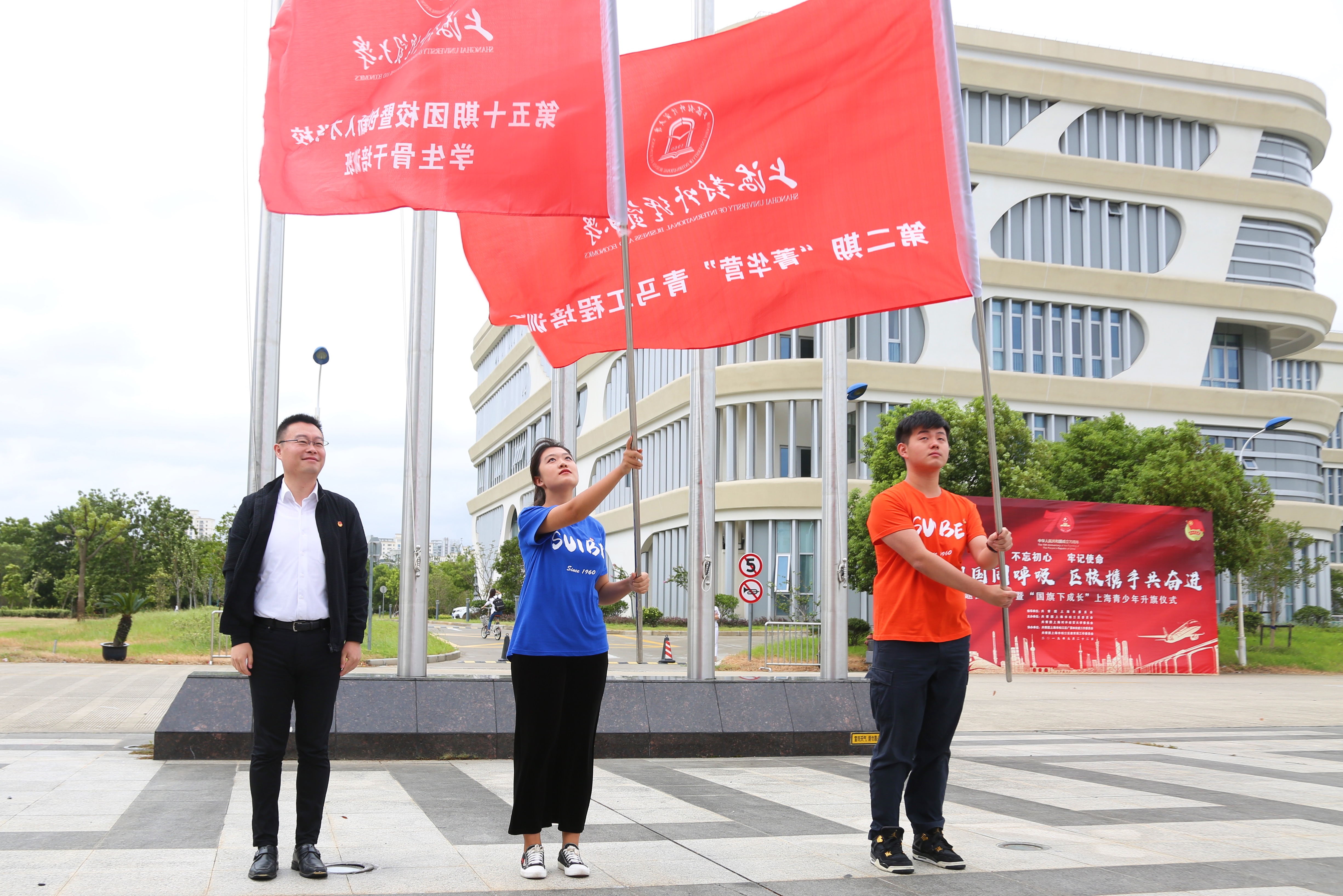 9月22日上午,“我与祖国同呼吸、区校携手共奋进”特别主题团日活动暨“国旗下成长”上海青少年升旗仪式在我校图文信息大楼南广场举行。共青团上海市委副书记戴冰、松江区副区长陈晓军、校党委副书记、副校长祁明出席升旗仪式,“青马工程”团员青年代表、广富林街道团员青年代表、团区委各直属团组织负责人、松江区共产主义学校学员代表和我校师生代表近300人参加本次活动。
