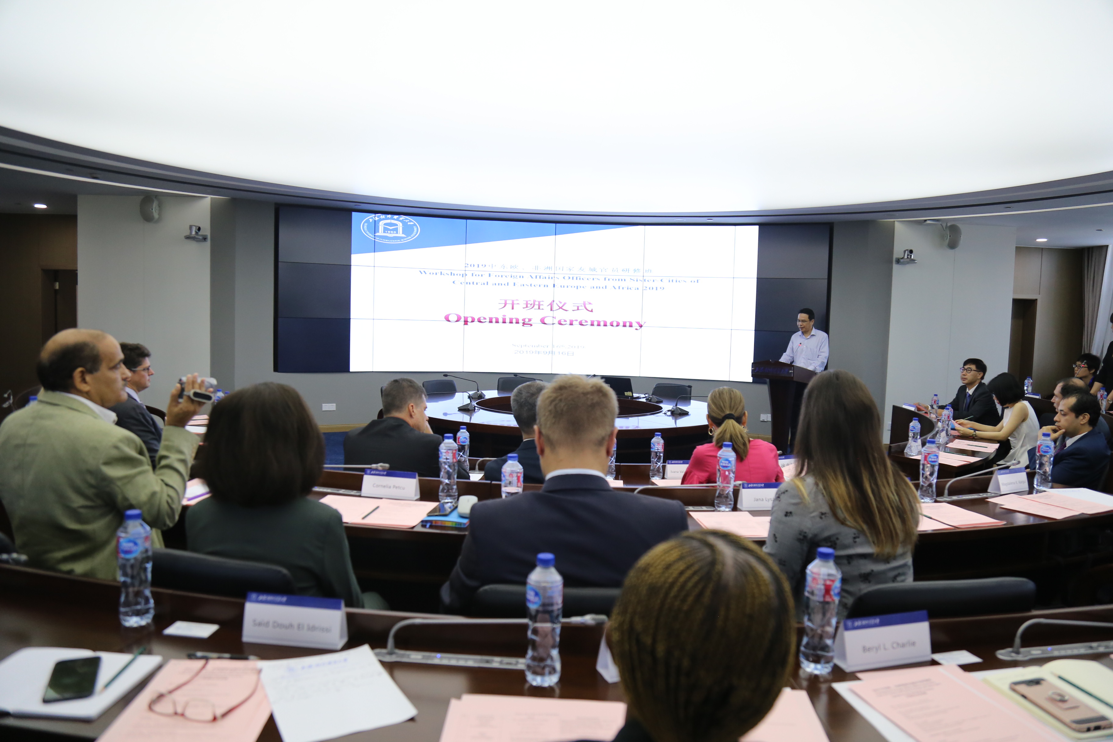 9月16日-22日,由上海市人民政府外事办公室和我校共同举办的“2019中东欧、非洲国家友城官员研修班”开班仪式在我校古北校区举行。市外办刘光勇副主任、欧非处励仿夏副处长、我校徐永林副校长、我校外事处张水辉副处长以及来自波兰、斯洛伐克、希腊、埃及、保加利亚、南非领馆的8位使领馆代表和来自中东欧、非洲国家友好城市的14位官员代表出席了开班仪式。