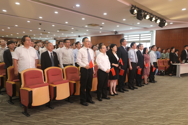 为庆祝中华人民共和国成立70周年,激发广大师生爱国情、强国志、报国心。10月1日上午,学校信息楼507报告厅隆重举行“不忘初心、牢记使命,同心共筑中国梦——庆祝新中国成立70周年主题活动”。校领导班子成员、各单位部门党政负责同志、师生代表近500人参加主题活动。
