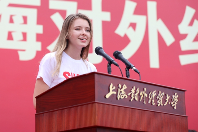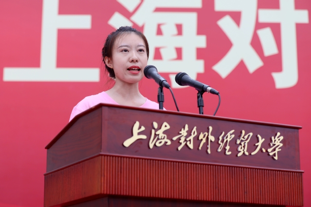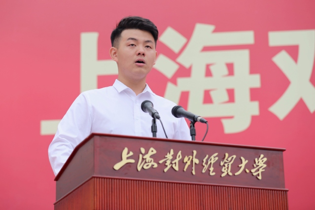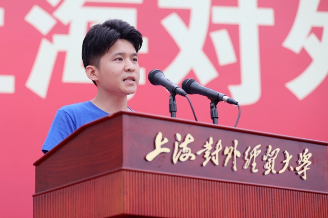 在校生代表徐嘉鹏同学与新生分享了他对“爱国、大学、青春”的理解。国际商务外语学院郭净雯同学代表本科生新生发言、金融管理学院朱旻昱同学代表研究生新生发言,来自俄罗斯的雅娜代表留学生新生发言。他们对学校热情周到的迎新工作表达衷心感谢,并表示要以上海对外经贸大学为人生新起点,努力奋进、接续奋斗,取得新的成绩。