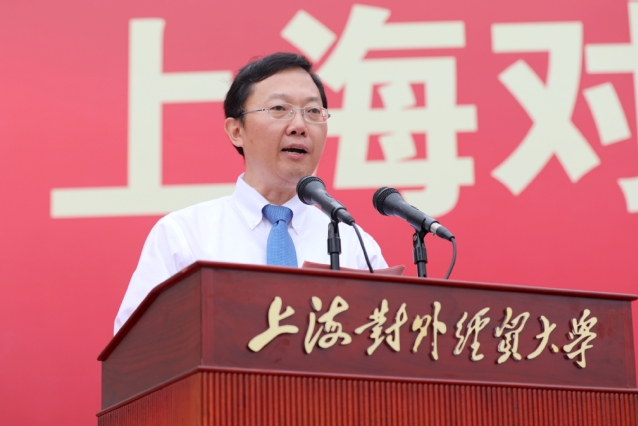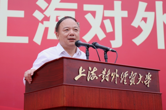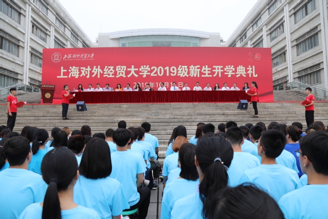 校长汪荣明发表了主题为“在经世报国中成就卓越人生”的讲话。他说,今天的开学典礼是同学们和他期待已久的日子,也是学校59岁生日,具有独特的意义。汪荣明首先代表学校全体师生向开启人生新征程的3507名2019级新生表示热烈欢迎,新生的到来为上海对外经贸大学注入了新的力量与希望。他赞扬了多名新生入校前在不同领域取得了优秀的成绩,对全体新生在“献给祖国的青春诗篇”活动中的优异表现给予充分肯定。