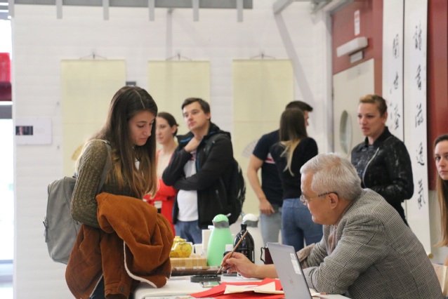 当地时间10月11日,卢布尔雅那大学孔子学院在卢大经济学院举办了“孔子学院开放日”活动。本次活动邀请上海交大文创学院教授、博士生导师、中国书法文化国际传播研究所所长周斌,国家级非物质文化遗产苏州桃花坞木刻年画传承人乔兰蓉,安徽音乐家协会的民乐演奏家唐丽、黎晴以及成都体育学院武术学院的学生组成的文艺代表团为大家带来了精彩的展演。孔子学院中外方院长出席本次活动。