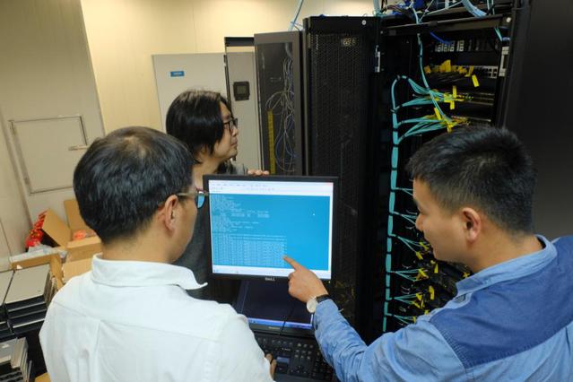 技术人员调试智慧校园虚拟化基础支撑平台设备