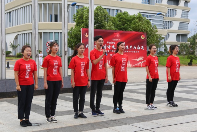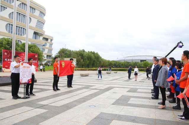五星红旗下,团员代表张子熠发表了题为《敢有青云志,莫欺少年穷》的演讲,用铿锵有力的声音表达了当代青年志达青云、荣校报国的决心,也抒发了对祖国母亲无尽的热爱之情。紧接着,由7位优秀暑期社会实践项目代表同学,也以朗诵的形式汇报自己的所思所感,向祖国70周岁生日献礼。