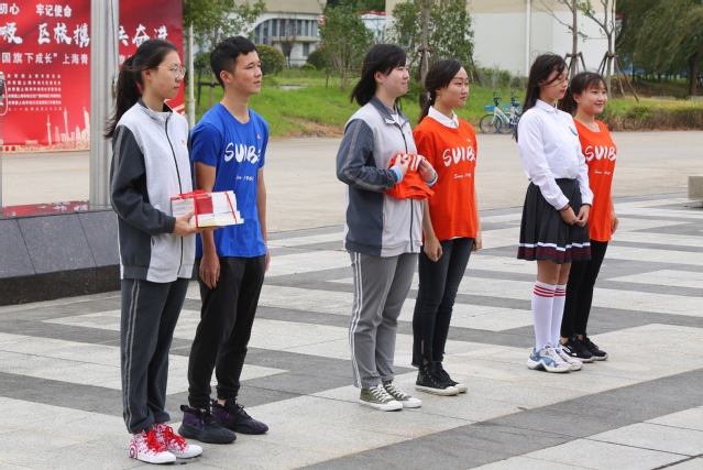 随后,全国优秀共青团干部、松江二中团委书记李捷带领现场团员青年重温入团誓词、共唱共青团团歌。松江区共产主义学校的学员接受我校“青马工程”团员青年赠送的礼物。