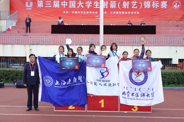 2019年第三届中国大学生射箭(射艺)锦标赛10月25-27日在江苏建筑职业技术学院举行。本次比赛由中国大学生体育协会主办,江苏建筑职业技术学院承办,来自全国68所高校564名参赛选手参赛。我校体育部主任崔树林作为嘉宾出席开幕式,观德射艺队12名运动员在体育部直属党支部书记李永华以及教练员李培金的带领下参加传统弓和反曲弓两大项目的比赛,取得三金两银一铜的优异成绩。