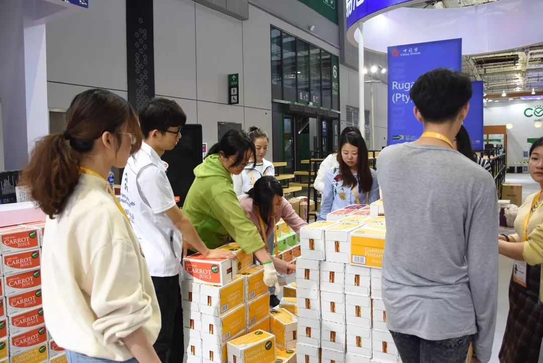 在一番讲解后,同学们进行了合理的分工和安排,以积极的热情和满满的活力投入到当天的工作中。经过一整天紧张的劳动,南非商会展台夺目亮相,让过路人都忍不住要多看上几眼。
