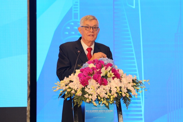 上海市政协副主席、我校法学院名誉院长周汉民教授通过视频作了“中小企业是‘一带一路’建设的重要力量”的主旨演讲。演讲中,周汉民教授先用一组数据来说明中小企业已成为国民经济中的中坚力量;在“一带一路”建设中,中小企业的作用同样不容小觑;他分析了中小企业走向世界的三种途径:贸易、投资和文化交往,中小企业已全方位走向世界,需要更完备的法制保障。关于加强中小企业贸易投资的法治保障,周汉民教授提了三点建议:一是要全力推动中国与相关国家的有关双边条约和相关区域的多边公约的谈判和制定。二是中国企业,尤其是中小企业走向世界应当有更好的律师服务。三是希望在争端解决方面有更多的知识普及,更好的专业服务。