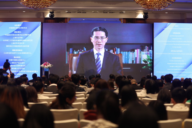 中国国际贸易促进委员会陈建安副会长,工业和信息化部中小企业局副局长叶定达,上海市法学会党组副书记、专职副会长施伟东,我校校长汪荣明,北京理工大学校长助理汪本聪,比利时前驻华大使、比利时终身荣誉大使奈斯先生和斯德哥尔摩大学教授,斯德哥摩仲裁协会前副主席帕特里夏·路易斯·肖内西女士等20名外籍专家,清华大学法学院教授、ICSID仲裁委员会成员、前WTO上诉机构大法官张月姣教授等50多位国内专家出席论坛开幕式。中国国际贸易促进委员会法律事务部刘超副部长主持开幕式。在论坛开幕式上举行了中国国际贸易促进会法律事务部和我校共建涉外法治研究与服务基地的揭牌仪式。