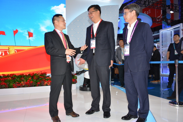 随后,校领导一行来到进博会中国馆会见商务部外贸发展局局长、我校85级经济系校友吴政平。吴政平向学校领导介绍了中国国家馆的布展情况,校友会秘书处秘书长温耀庆、副秘书长晏琼陪同参观。