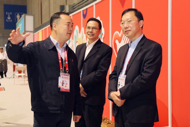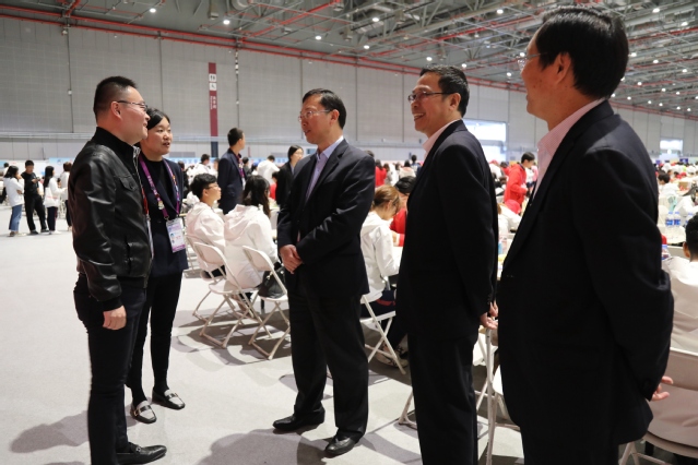 随后,学校领导一行来到南非商会展台,看望了为展台提供布展和管理服务的会展经济与管理系师生,详细询问了解了展台布展情况,对师生用专业知识和技能参与布展表示充分肯定。
