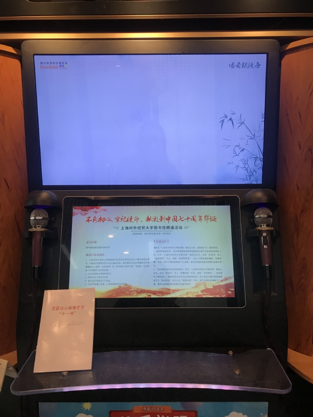 “缅怀与传承”——红色经典诵读:为庆祝新中国成立70周年,图书馆发挥信息化优势,通过朗读亭新媒体方式开展了“缅怀与传承”——红色经典诵读活动。在党员诵读环节,组织党员朗诵《见证初心和使命的“十一书”》等篇目,如:贺页朵的“宣誓书”、赵一曼的“示儿书”、左权的“决心书”等。感触共产党人以坚定的理想信念坚守初心、滋养初心、践行初心的感人故事,在诵读中体悟共产党人的信念与忠诚,初心与使命。