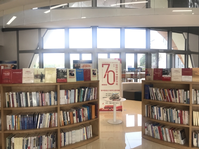 主题书架+专题书展,双线促学习:图书馆聚焦学习贯彻习近平新时代中国特色社会主义思想这一主线,结合主题教育和新中国成立70周年庆?;疃?,设立主题书架,开展专题书展,通过“新中国成立70周年专题书展”和“习近平书单”,满足师生主题教育的学习需求,提升图书馆服务立德树人的能力。