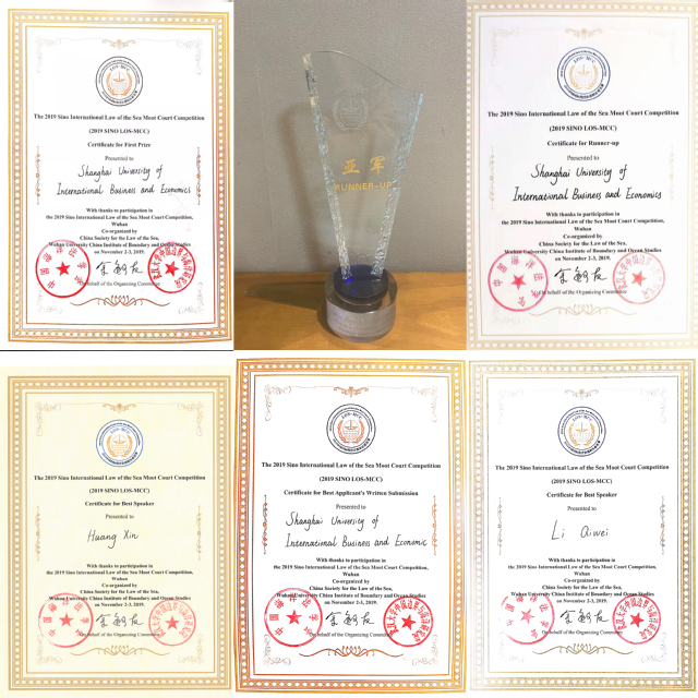 11月1日至11月3日,2019年(中国)国际海洋法模拟法庭竞赛(2019 Sino International Law of the Sea Moot Court Competition)在武汉大学举行。此项国际赛事由中国海洋法学会和武汉大学边界与海洋研究院联合主办,吸引了包括法国凡尔赛大学、泰国国立法政大学、复旦大学、上海交通大学、厦门大学、山东大学,外交学院在内的25所国内外知名高校参加。由法学院杜蓉和吴宁铂老师带队,法学院5名研究生组成的团队代表我校参加。比赛中,我校队员奋勇拼搏,首次参赛即跻身决赛,荣获亚军并摘得赛事一等奖和“最佳书状”奖(正方),黄馨、李绮薇同学获得“最佳辩手”称号。