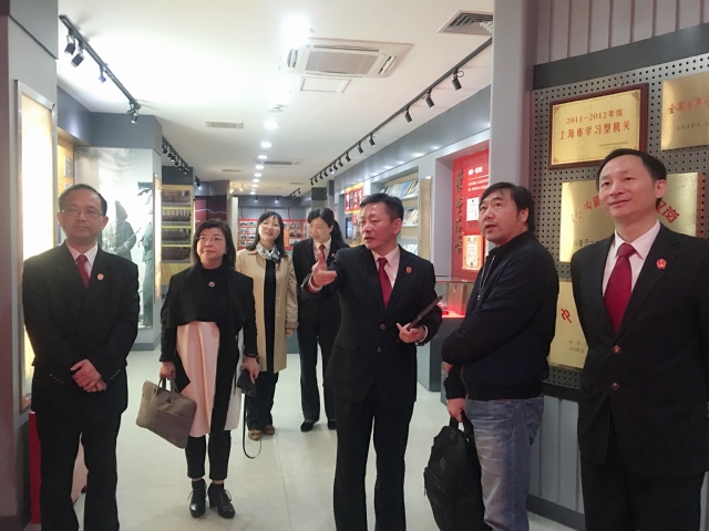 会后,法学院一行参观了松江人民法院院史室和诉讼服务中心。