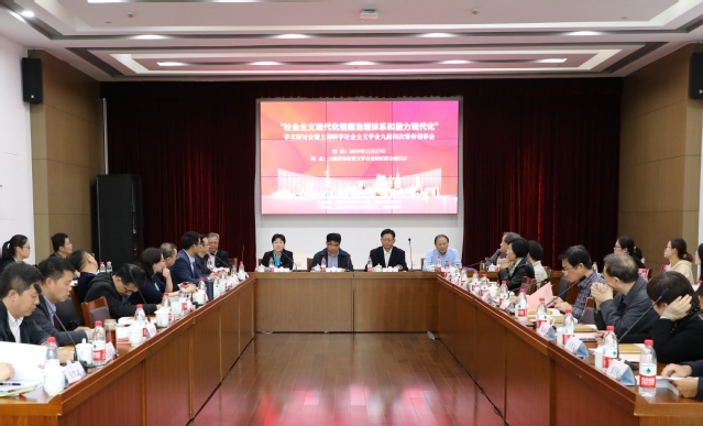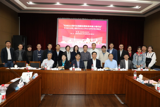 11月17日下午,“社会主义现代化强国治理体系和能力现代化”学术研讨会暨上??蒲缁嶂饕逖Щ峋沤焖拇纬N窭硎禄嵩谖倚U倏P5澄榧且笠?,上海市社联专职副主席、上??蒲缁嶂饕逖Щ峄岢そ獬Щ岣被岢の饨馍?、周智强、黄福寿、郝宇青,来自复旦大学、华东师范大学、市委党校、国防大学、上海师范大学、华东理工大学等校的专家学者、研究生60余人参加会议?;嵋橛缮虾?蒲缁嶂饕逖Щ岣被岢?、我校党委副书记、纪委书记许玫主持。