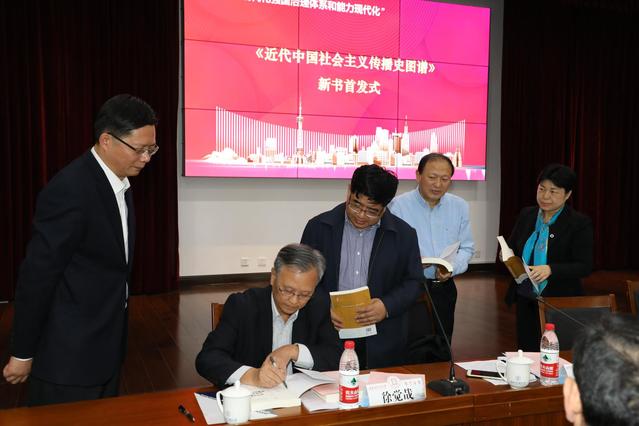 本次会议还举行学会常务理事、上海社科院徐觉哉研究员所著的《近代中国社会主义传播史图谱》新书首发仪式,徐觉哉为与会专家学者签名赠书,并向与会人员介绍了图书的选题、撰写情况。