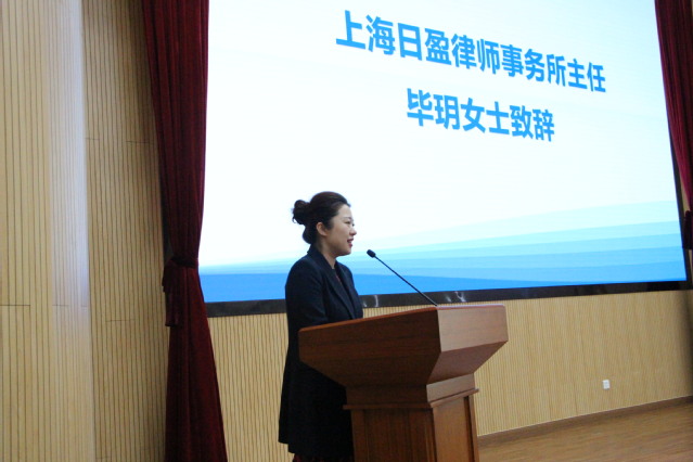 毕玥在致辞中表示,与高校进行多方位合作并致力繁荣法学教育是律所全体同仁作为职业法律人应当承担的社会责任,上海日盈律师事务所将持续为培养优秀法律人才贡献力量,为法学学子搭建更好的实践锻炼平台,希望参赛队员能够充分把握机会,在比赛中交流学习,锤炼提高。
