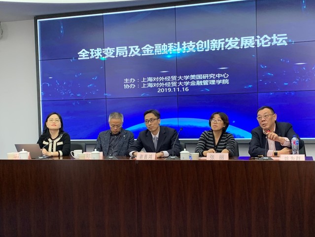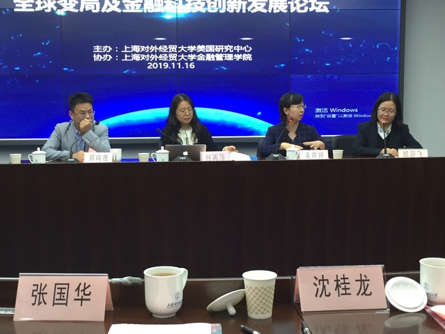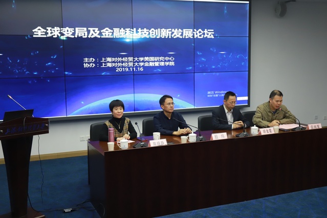 11月16日下午,由学校美国研究中心主办、金融管理学院协办的全球变局及金融科技创新发展论坛在古北校区综合楼326会议室举行。来自上海市商务委员会、上海市发改委、上海市金融工作局、上?;平鸾灰姿⒍街と?、江海证券、金丘区块链公司、上海社会科学院、复旦大学、同济大学、华东师范大学、温州大学的专家学者及我校研究生、本科生近90人参加了本次论坛。