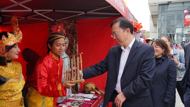 国际文化交流学院院长杨晓雁宣布本届文化节开幕,活动期间校长汪荣明,副校长陈洁等校领导亲临现场,同留学生进行了亲切的交谈。