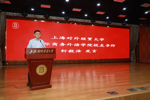 随后,各位导师代表先后作了发言。戴金华曾经是外语学院专业教师、党总支书记,他对学院“三全育人”工作给予肯定,并表示作为关心下一代工作委员会的老同志参与到“三全育人”工作感到荣幸,将努力促进“朝阳”与“夕阳”相互辉映。来自浦发银行总部的轩毅浩校友回忆了在校期间的青葱岁月,感叹学校的快速发展,对回归母校担任校友导师表示非常荣幸,将以学习和工作成长的经验和阅历促进学弟学妹成长。大一年级班主任季珂南进一步明确了班主任的职责,表示在“三全育人”过程中将不断贡献自我力量和智慧。学生党员於倩作为红色导生,觉得责任重大,将以党员朋辈的身份不断磨练自身,不忘保持队伍的纯洁性与先进性,与学弟学妹青春心向党,共同进步成长。班导生严文雯介绍了青领志愿者的工作与担当,并表示将在接下来的“三全育人”工作中继续发挥好作用,不忘初心,砥砺前行。