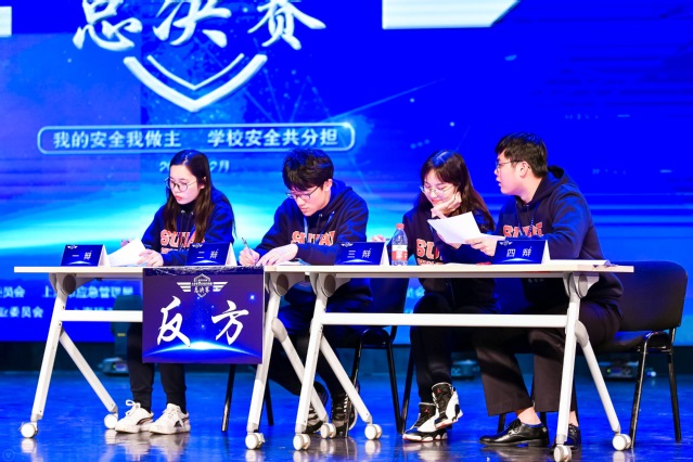 经过技能操作比赛、理论竞答、安全公开课的激烈角逐,我校和上海交通大学进入终级PK,争夺总冠军。终极PK延续辩论赛的形式,辩题为“外卖是否可以进校园”,经过激烈的观点陈述和一对一辩论和总结陈词,我校惜败上海交通大学,最终上海交通大学夺得冠军,我校荣获亚军。