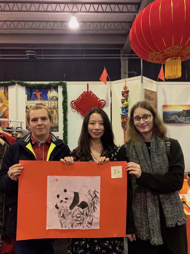 在前期义卖品的准备中,孔子学院教师齐上阵,精心设计并手工制作了圣诞和新年贺卡、手工灯笼、手链和多幅书画作品。这些充满中国文化元素和教师们爱心的物品在义卖当天引起了现场各国朋友的浓厚兴趣。圣诞和新年即将到来,因此,手工制作并现场书写中文祝福语的贺卡倍受青睐,许多当地朋友都想用这样一张特别的贺卡给家人和朋友送上节日祝福。
