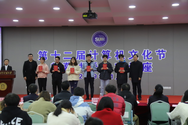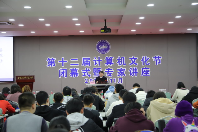 11月29日中午,我校第十二届计算机文化节闭幕式暨专家讲座在图文信息大楼526报告厅举行。副校长徐永林出席闭幕式并致辞,上海大学计算工程与科学学院教授许华虎、统计与信息学院院长刘永辉、学院党委书记陈加林,校党委宣传部副部长姚福生、学院党委副书记韦玉娟、校团委书记缪韵笛、副院长郝程程、王利娟、计算机应用能力大赛指导老师顾振宇以及全校300多名计算机爱好者参加闭幕式。