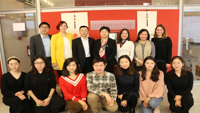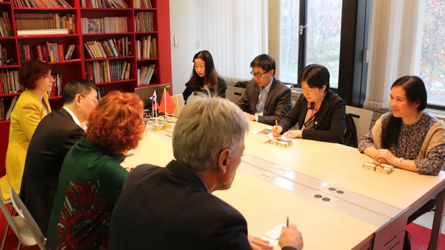 在卢大经济与商务学院,我校代表团与经济与商务学院副院长马扬?斯莫尼戈(Marjan Smonig)教授、国际交流办公室负责人、卢大孔子学院外方院长达尼叶拉?沃里奇(Danija Voljc)等举行会谈。达尼叶拉?沃里奇代表经济与商务学院欢迎代表团来访,她感谢我校对卢大孔院工作的支持,表示正是通过孔院平台,双方大学发展成为战略合作伙伴,并进行了卓有成效的合作。许玫感谢孔院在促进双方大学战略合作方面做出的重要贡献,并对卢大孔院的发展及志愿者教师管理等问题作了回应。