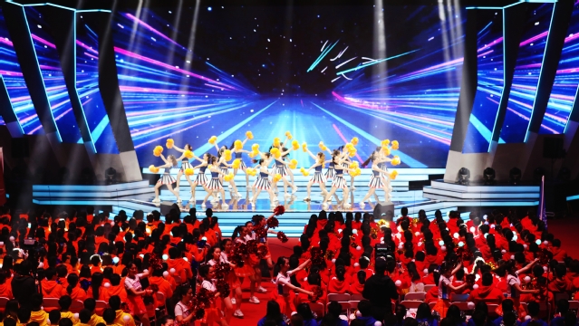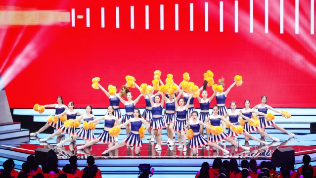 本次活动由中共中央市教卫工作委员会、市教委主办,上海财经大学、复旦大学承办。上海市副市长陈群等领导出席。现场的18个学生方阵围绕“歌唱祖国”“校歌嘹亮”“青春颂歌”“畅想未来”4个主题分别进行了拉歌表演。我校165名学生生动演绎了“青春颂歌”环节的曲目《你笑起来真好看》,洋溢着青春的气息,活力四射,点燃全场。我校与上海第二工业大学合作,带来了由40人组成的啦啦操表演《最好的舞台》,将全场的氛围推向高潮?!疤ㄉ弦环种樱ㄏ率旯Α?,整齐划一的动作,设计精美的造型背后,是队员们反复的排练和精心的打磨,她们以青春之名,也在人生的舞台上追求着“最好”!