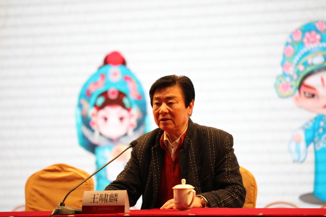 王啸麟从京剧的历史讲起,为现场师生介绍了京剧的行当类别和四功五法的练习方法。当仍是满头乌发、神采奕奕的王老先生提到自己已七十九岁高龄,在场观众无不拍手称赞。老先生有时说到兴起处,自己引吭示范,更是引得现场阵阵掌声。
