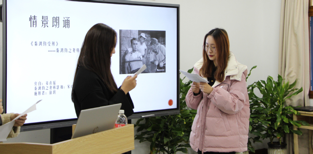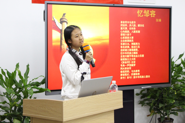 “红色育人课堂”开始之前,同学们根据《纲要》课内容以及龙华烈士纪念馆提供的烈士名单,选定自己最敬佩的烈士,通过查找资料,全方位了解烈士的事迹,再将这些资料编写成剧本、撰写成诗歌、制作成PPT。在“红色育人课堂”上,同学们用多种方式展现了20余位革命先烈的动人事迹:用短剧再现宋教仁、顾正红、李白等烈士的人生片段,将他们不畏流血牺牲的革命精神生动地表现出来:朗诵瞿秋白、柔石、郁达夫、殷夫、江上青等先烈的家书与文学作品,让同学们从中感受到这些革命家对国家、对亲人、对爱人的无限眷恋与柔情;用演讲的方式,将秋瑾、邹容等烈士短暂而传奇的一生进行总结,并为邹容献上一首激情澎湃的诗歌——《忆邹容》,诗中“哀兮!哀兮!我中华之豪杰!壮兮!壮兮!我中华民族之英魂!”一句震撼了所有同学的心;用口述的方式讲述向警予、李求实、赵世炎等烈士可歌可泣的革命故事,用这些感人至深的故事让课本上烈士的名字“活”起来。