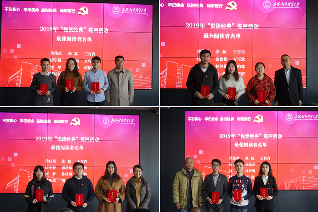 “悦读经典”2019年巡回活动由工商管理学院党委和党委学工部共同举办,以“梦想”为关键词,以“明青春志,做追梦人”为主题,以专家导读、骨干领读、校外共读、实践研读为阅读形式,历时八个月,共组织5个阅读小组、近百余人,开展了9站大型校内外主题共读活和近65场团体研读活动,撰写阅读笔记100余篇,在“SUIBE管院党员”微信公众号上分享优秀读书心得7篇,编撰《上海对外经贸大学 “悦读经典”2019年巡回活动成果展示》十三万余字,评选出最佳阅读者12名。