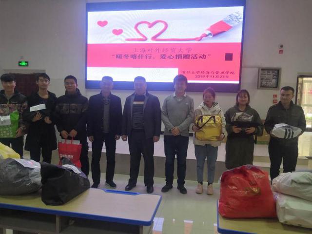 梁振民老师代表学校向喀什大学学生捐助爱心衣物