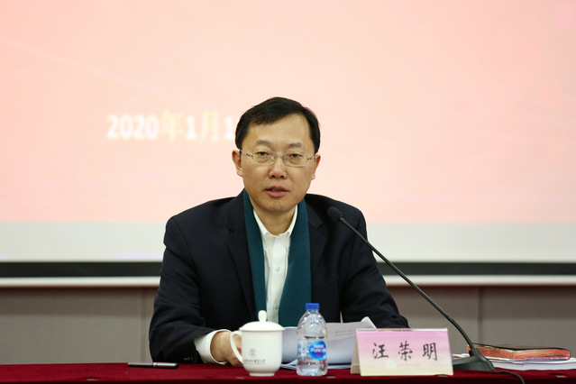 汪荣明主持2019-2020学年第一学期期末行政工作例会暨“十四五”改革与发展规划编制工作启动会。该项议程中,首先由学生处、教务处、科研处、人事处、研究生院、校长办公室、校友会秘书处等7个职能部门依次通报2019年重点行政工作完成情况和2020年重点工作任务;而后由发展规划处部署“十四五”规划编制有关工作;最后,汪荣明发表讲话,阐述对学校发展的判断和思考以及对2020年工作重点的想法。
