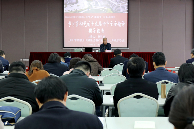 党的十九届四中全会召开后,学校迅速掀起学习贯彻落实四中全会精神的热潮。学校广大干部、教师认真学习会议精神。校领导组织集中学习,班子成员交流学习体会,各学院党委、基层支部通过多种方式组织专题学习,广大教师党员对会议精神展开热烈讨论。11月28日下午,学校邀请上海市“学习贯彻党的十九届四中全会精神”宣讲团成员桑玉成教授作十九届四中全会辅导报告。学校党委下发关于学习宣传贯彻党的十九届四中全会精神的通知,组建校内宣讲团,开展集体备课和宣讲。相关专家教授在主要媒体上撰写发表十九届四中全会相关评论体会文章。学校深入贯彻党的十九届四中全会精神,坚决贯彻落实党委领导下的校长负责制,扎实推进依法治校示范校建设,不断完善内部治理体制机制,着力提高学校党委管党治党能力和办学治校水平。