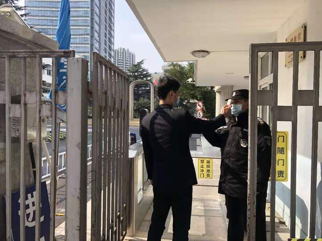 为科学防控疫情,保卫处制订了详细的工作安排和预案,重点做好门卫管理、校园巡查、值勤人员管理、测量体温、人员登记、社区送餐等工作。学校各校区大门和学生社区实行24小时值勤,安保团队克服队员力量不足等困难,门卫队员每天站岗时间近十个小时,每天对入校人员测量体温、查验一卡通、登记相关信息。“请出示证件、测量体温、登记信息”“外来人员不得入内”等提示,安保人员每天要重复上百遍。对于想要入校的外来人员,安保人员耐心劝导,让他们自行离开。