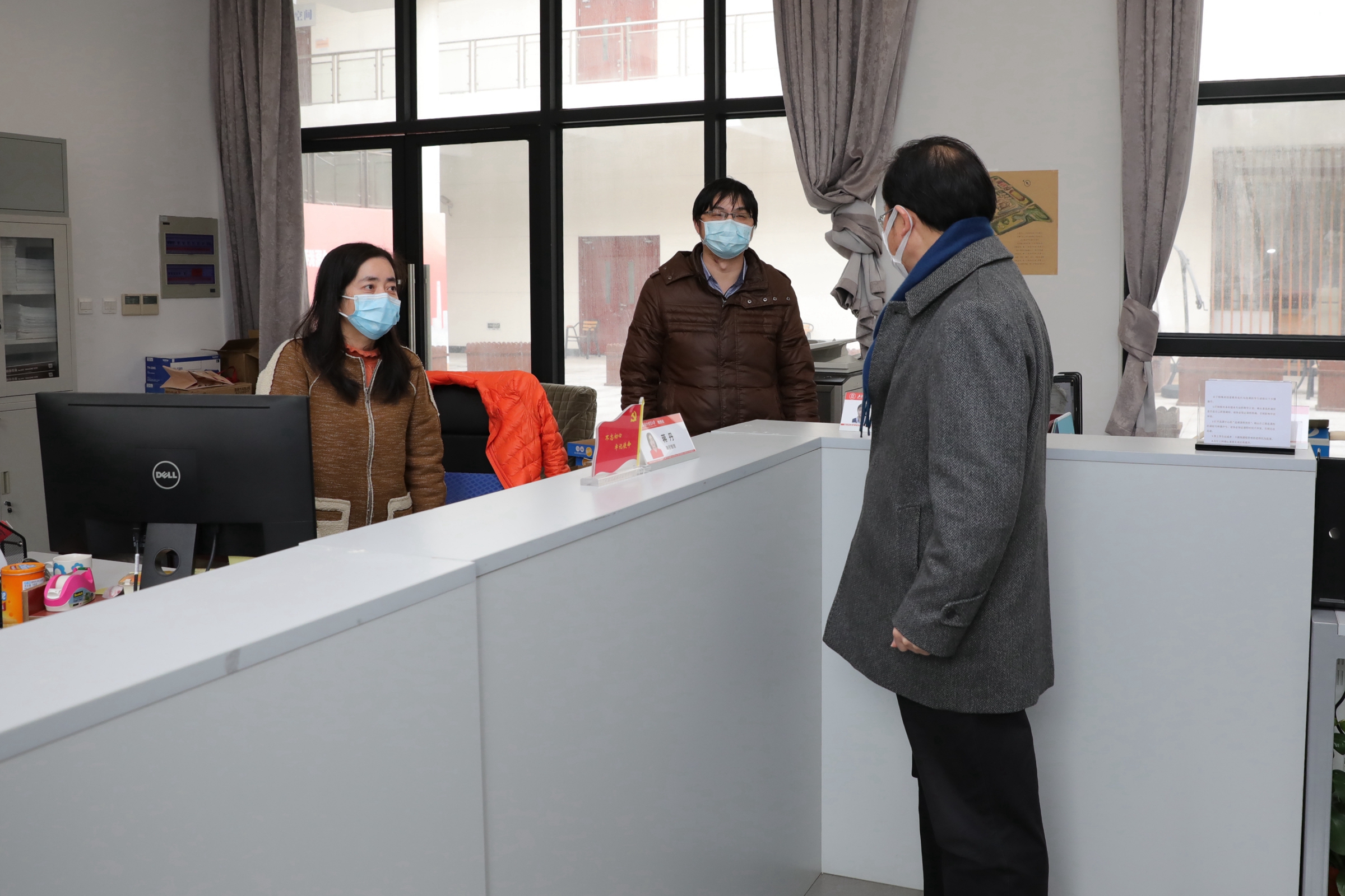 观摩课程在线教学后,汪荣明详细听取了学校在线教学整体工作情况汇报,并慰问了为在线教学提供服务保障的一线工作人员。