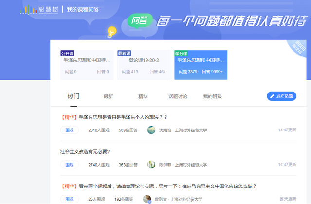 走出去。“毛泽东思想和中国特色社会主义理论体系概论”(以下简称“概论”)课程于2019年建成在线开放课程,已在智慧树平台开课3期,具有完整的课程教学视频和丰富的线上教学资源。结合本学期学校在线教学总体要求,教学团队依托在线课程资源和前期建设基础,着力从三个方面推进在线教学改革工作,一是进一步优化教学设计,做好本校学生在线修读“概论”课程的教学方案与实施。二是共建共享,为兄弟高校提供“概论”课程在线教学支持,目前已有喀什大学等9所高校引进我?!案怕邸笨纬?,万余名学生参加在线学习。三是加强在线研讨组织与引导,多个热点话题引起学生关注,有的关注人数高达2,000余人,在线教学两周以来,师生互动已超过10,000余次。