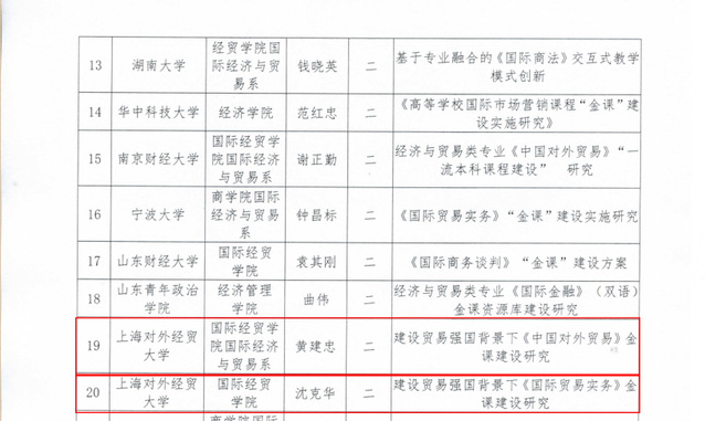 本次评选共有全国共有32个项目获得立项,我校立项数量与中央财经大学并列全国高校第一。这是国内同行对我校人才培养与课程建设质量的高度肯定,为国际经济与贸易国家级一流专业建设再上新台阶增添动力。