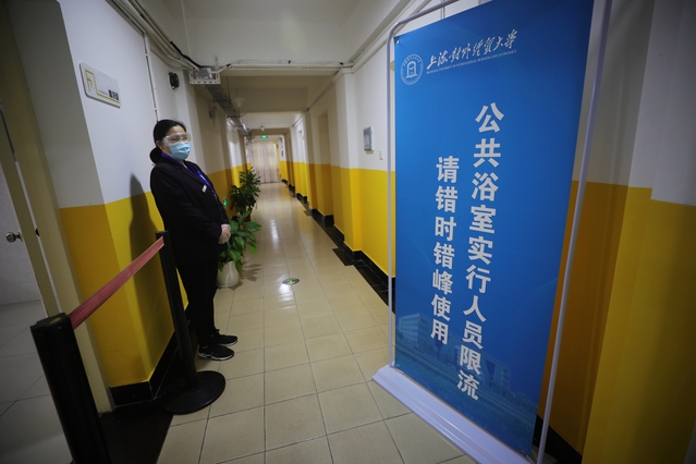 大楼内公共浴室也实行限流、错峰、错时、分批使用的方式,保证学生在大楼内生活的安全。公共浴室将延长开放时间,定时清洗消毒,工作人员及时查看浴室内部人员密度,如发现内部人员达到使用阈值,将及时进行限流。