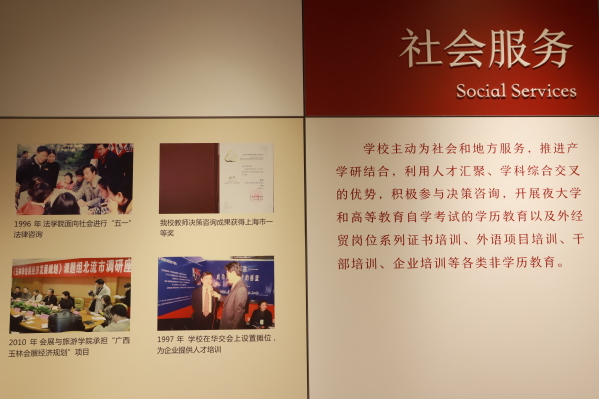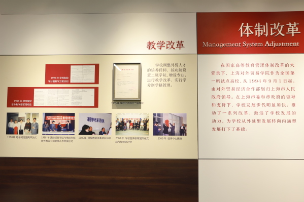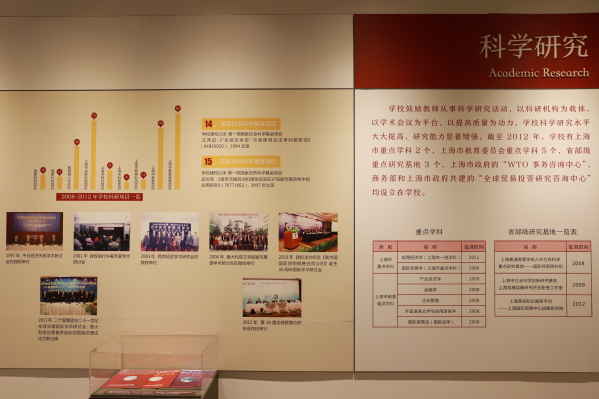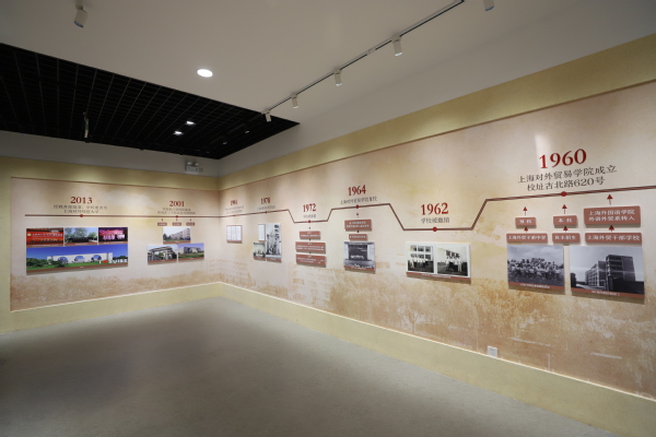 上海对外经贸大学校史馆位于行知楼,共上下两层,800余平方米,自2006年建成以来,历经多次修缮和补充。为迎接建校60周年,校史馆再次修葺一新,2020年10月11日重新对外开放。