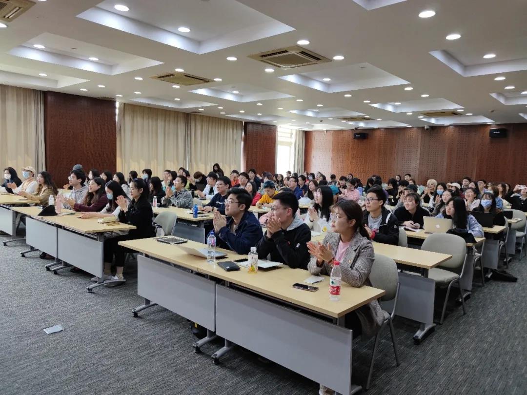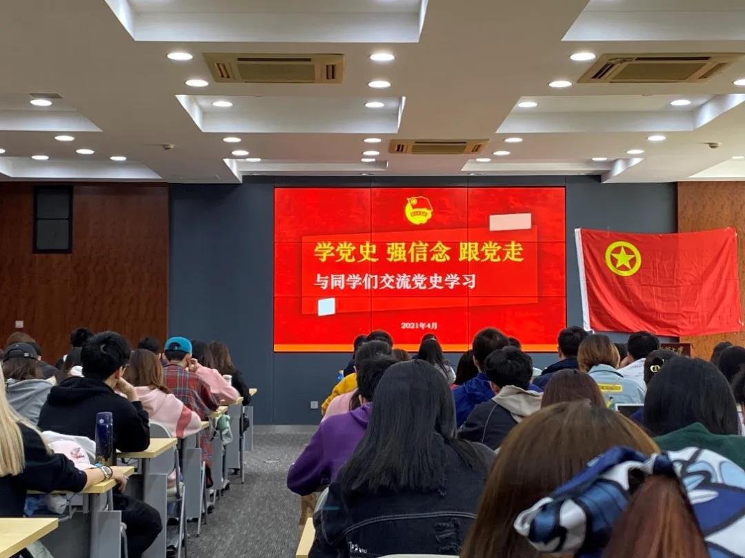 4月18日上午,“学党史、强信念、跟党走”上海对外经贸大学共青团党史学习教育首场主题讲座在图文信息大楼503会议室举办,校团委书记缪韵笛主讲,学校第三期“菁华营”青马工程培训班、第五十四期团校暨创新人才学校学生骨干培训班全体学员,校学生会及研究生会全体工作人员参加讲座。