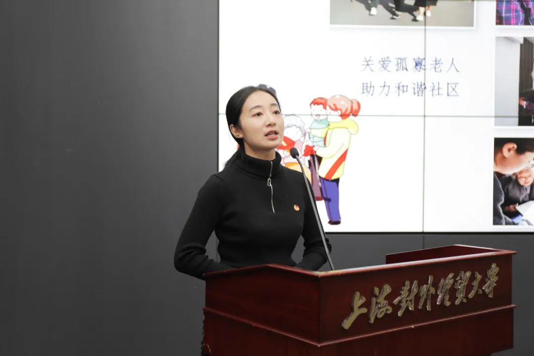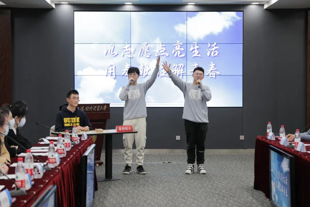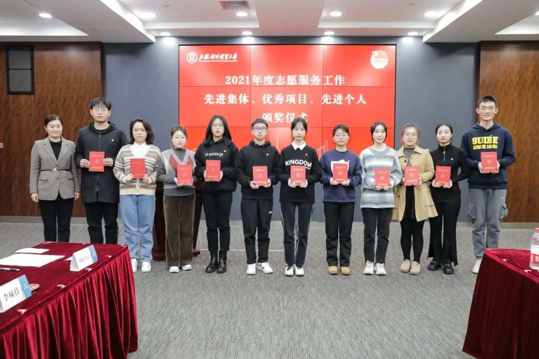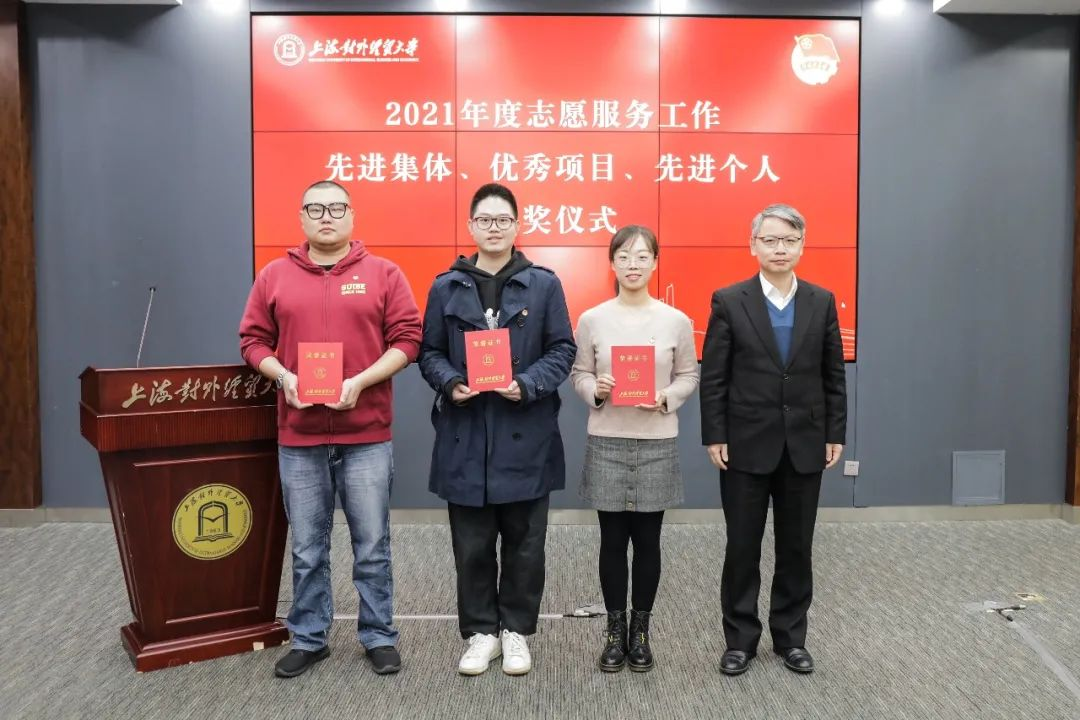 缪韵笛宣读了《关于表彰2021年度上海对外经贸大学志愿服务工作先进集体、优秀项目、先进个人的决定》。经评选,法学院团委等3个集体获“志愿服务工作先进集体”奖,松江烈士陵园志愿服务等5个项目获“志愿服务工作优秀项目”称号,高绮、李味佳等10名学生获“杰出志愿者”称号,于璐盈、魏泽坤等40名学生获“优秀志愿者”称号。