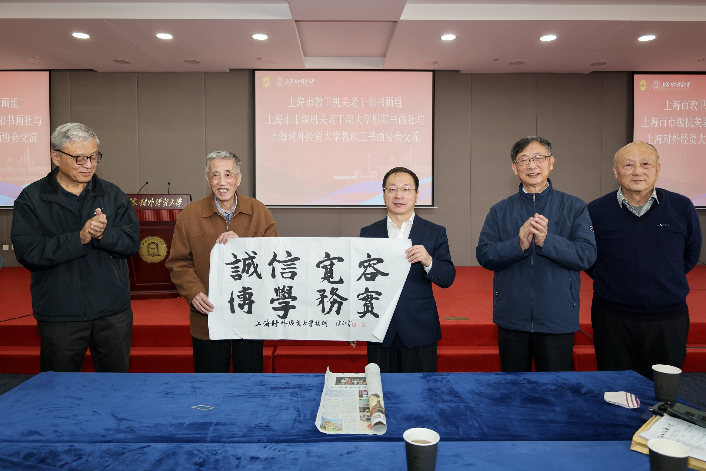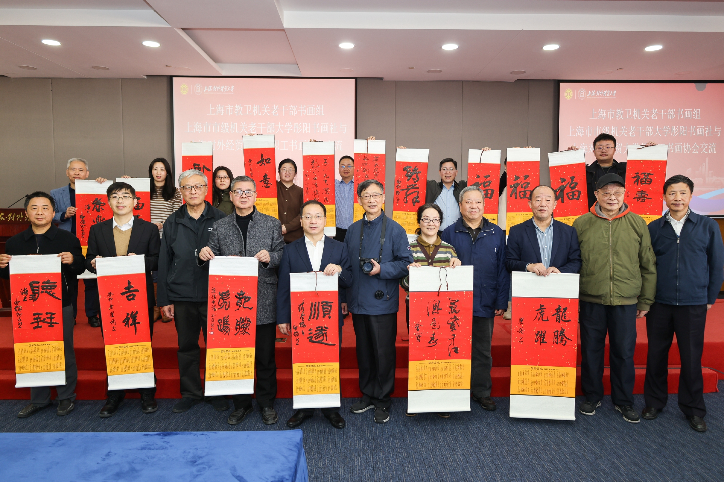 12月14日上午,上海市教卫机关老干部书画组、上海市市级机关老干部大学彤阳书画社与我校教职工书画协会在松江校区信息楼526室举行交流活动。校党委书记祁明出席活动并致欢迎辞,校党委副书记、工会主席吴毅介绍学校发展情况。上海市教卫机关老干部书画组、上海市市级机关老干部大学彤阳书画社成员、学校办公室、党委组织部、党委宣传部、校工会(妇工委)、老干部办公室、档案馆及教职工书画协会代表出席活动。活动由市教育工会原副主席、书画组召集人张中韧主持。