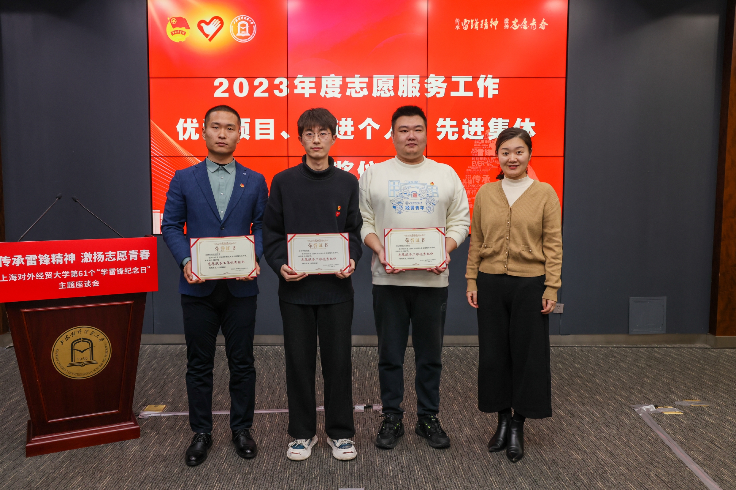 会上,获评荣誉的项目、集体及志愿者代表贸易谈判学院2022级本科生喻王玮、会展与传播学院2020级本科生张文滨、会计学院2023级本科生王炫、马克思主义学院团总支书记胡婷、金融管理学院团委书记关文博分别作交流分享。
