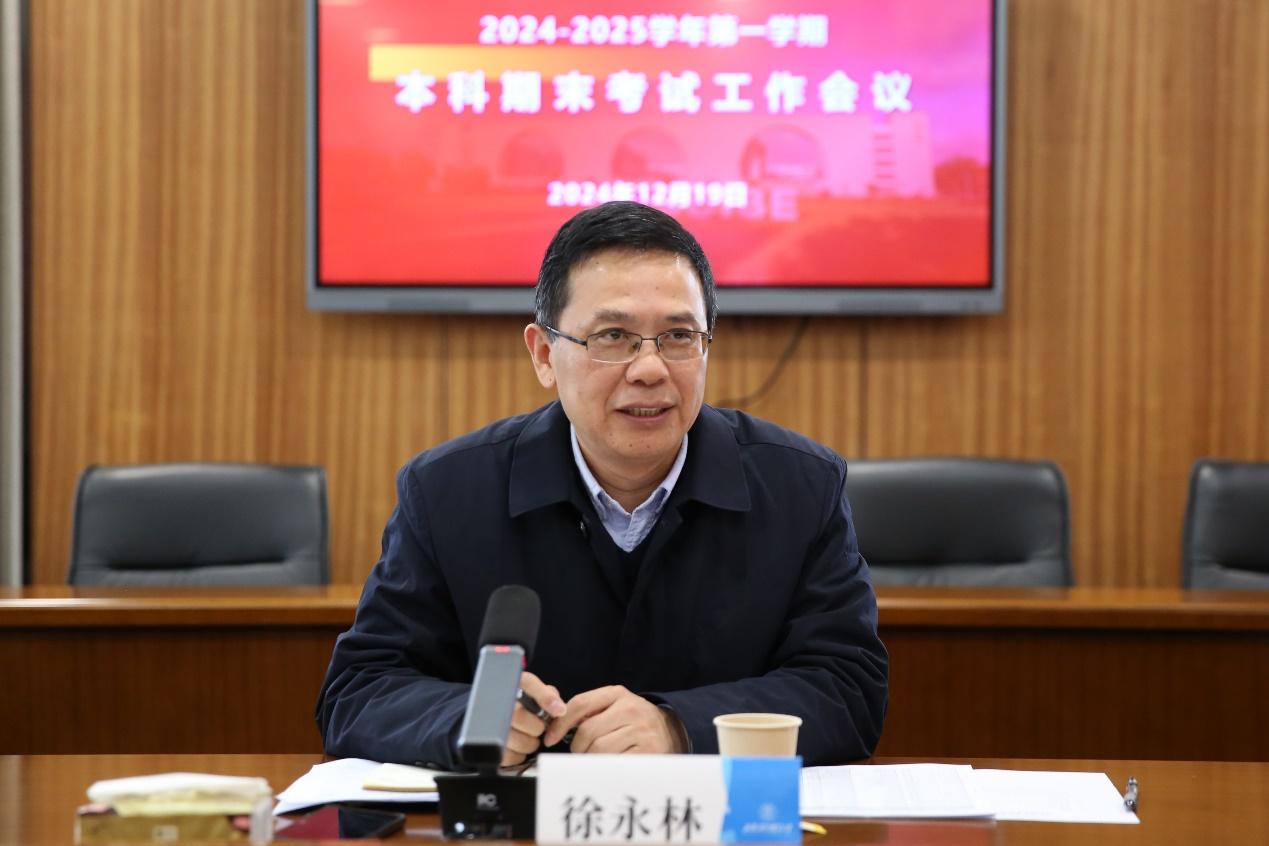 徐永林强调,考试是教学的一个重要环节,是检验教学质量、掌握学生对学科知识掌握程度、体现教学目标达成度的有效手段。期末考试成绩是对学生课程学习的总体评价,关乎学生切身利益,需引起各部门、各学院的高度重视?;嵘希煊懒侄钥际怨ぷ魈岢鏊牡阋螅阂皇歉餮г盒柩习咽跃沓鎏庵柿?,严格按照相关质量标准开展试卷核查;二是加强对学生的考前宣传教育,使学生明晰考试纪律的严肃性,深刻认识到诚信考试的重要性,严肃考风考纪;三是监考教师需切实履行监考职责,严格落实监考规定的各项要求,有效防范考试违规苗头,妥善处理突发情况,确??际怨ぷ餮纤嗳险妗⒐娣队行?/span>;四是要求相关部门加强考试周的服务保障工作,为学生创设舒适整洁的复习环境,关注学生考试周饮食健康及学习空间的环境保障。