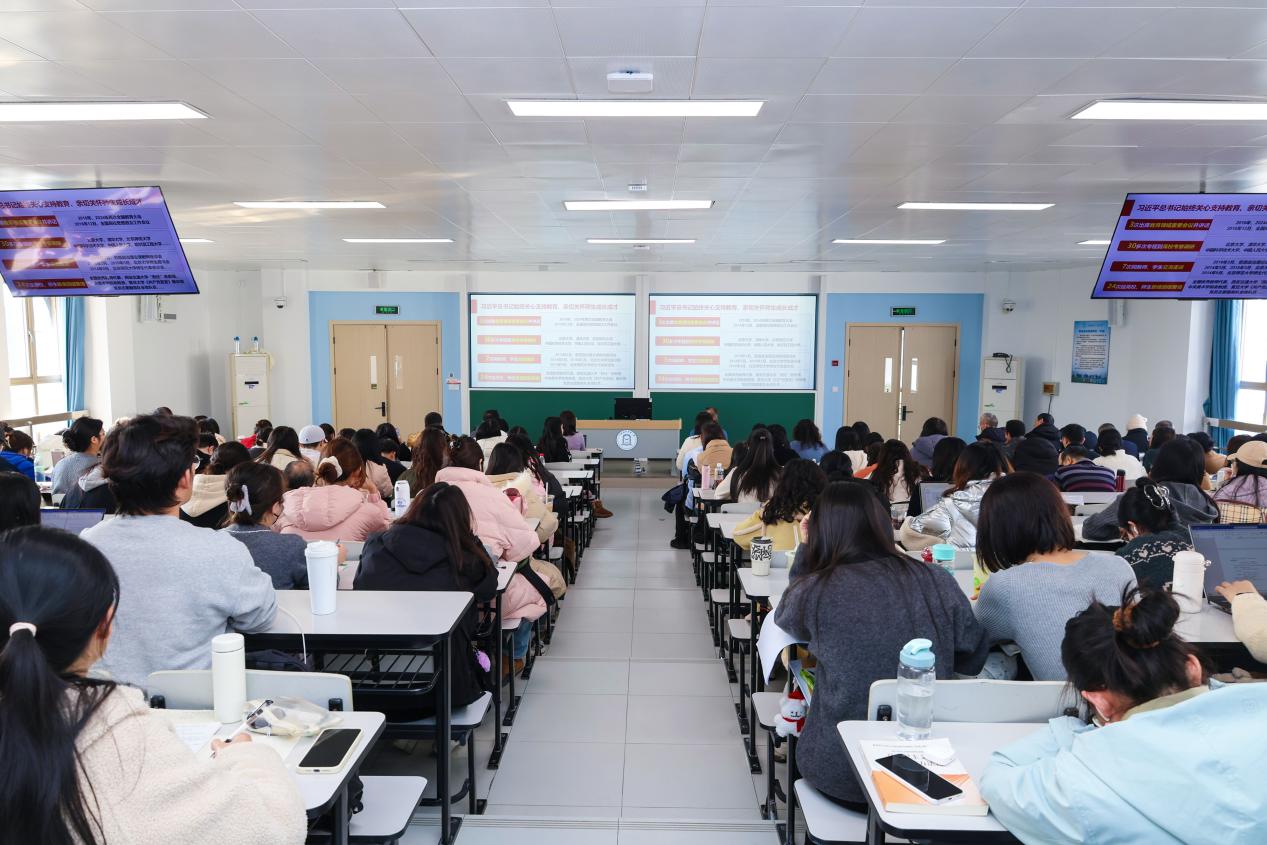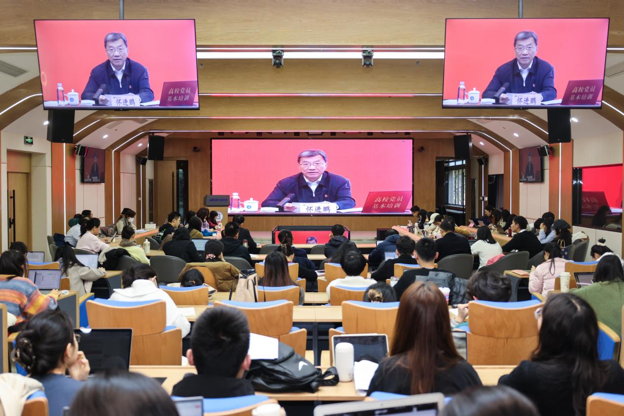 12月24日下午,学校开展师生党员集中培训,共同学习教育部党组书记、部长怀进鹏同志作的《深入学习贯彻全国教育大会精神,挺膺担当,为教育强国建设贡献力量》专题报告。学校全体师生党员在松江校区图文信息楼507报告厅主会场和松江、长宁7个分会场同上一堂党课。校党委书记祁明主持党课学习。